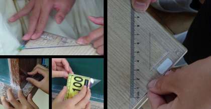 算数「垂直・平行と四角形」の学習では、垂直と平行の意味を知り、身の回りにある垂直や平行な直線を探したり、友だちと交流したりして、生活と結び付けてそれぞれの気付きや発見を大切に学習を進めています。