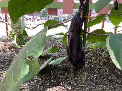 さっそく なすびを しゅうかくしました。