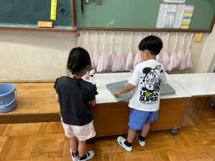 給食をおいしく食べるために、いつも一生懸命に働いてくれる給食当番。最近は、自分たちだけでできることも増えてきました。