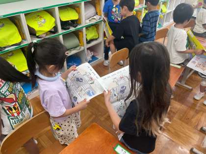 いろんな学習の中で、意見や考えの交流を行っています。課題が早く終わったら、教室の後ろに行って、友達とノートを見せあったり、考えを話したりして自分の考えを広げています。