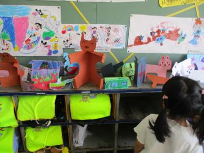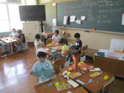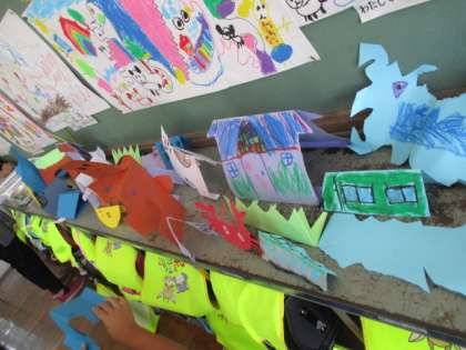 色画用紙を使って、追って立つように工夫して作品を作りました。