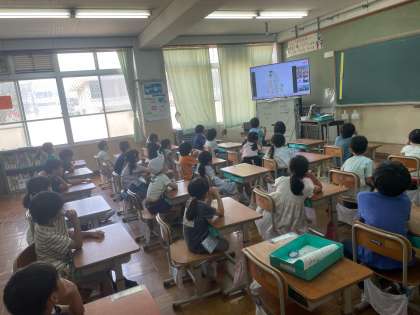 7月の朝会を行いました。今回は暑さもあり、リモートで行いました。しっかり話を聞いたり、校歌を歌ったりすることができました。