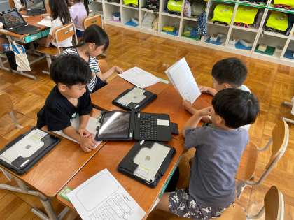国語の「つぼみ」の単元で、クイズ大会を行いました。自分が調べた「つぼみ」や「くちばし」「動物の角」等の問題を作り、友達どうしで出し合いました。みんな楽しそうに、クイズを出したり答えたりしていました。