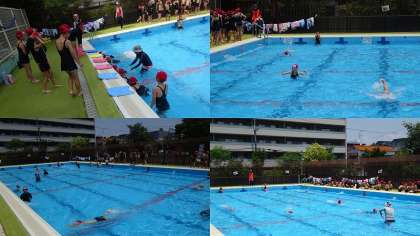 体育「水泳運動」の学習では、今できる泳ぎ方でより長い距離を泳いだり、少しがんばればできそうな泳いだりできるように挑戦しています。泳ぎ方のポイントを確かめながら自分のめあてに向かって頑張っています。