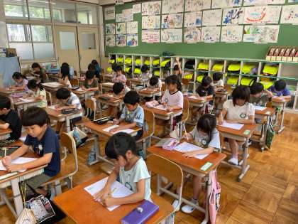 硬筆の書写を行いました。良い姿勢で良い字を書こうとする人がたくさんいました。