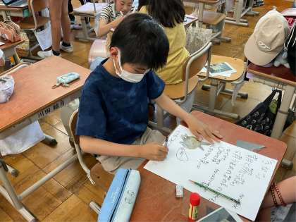 うさぎのポスターを さくせいしています。