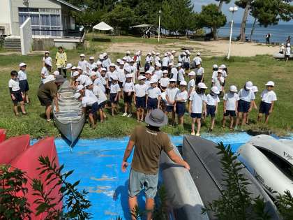 まずは、みんなで協力してカヌーの運び出しです。お互いに声を掛け合いながら、テキパキと動けています!