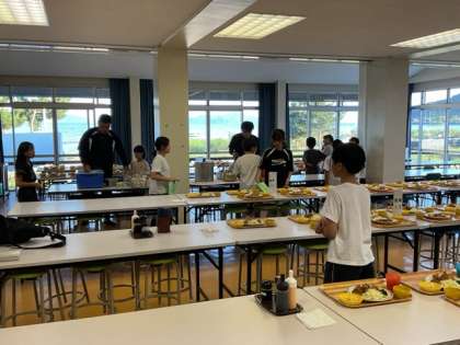 食事係を中心に、班の中で声を掛け合いながら、準備と後片付けをすることができています。