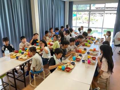 ラジオ体操で頭も体もスッキリしたので、朝ごはんもしっかりと食べています。