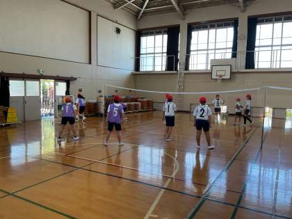 月曜日の1回目の学習では、キャッチするタイミングがわからなくて難しそうにしていましたが、だんだんと動きがスピーディーになってきました。相手のコートに落とす攻撃と、自分のコートに落とされない守りのどちらも、作戦を立ててチームで力を合わせながら頑張ってほしいと思います。