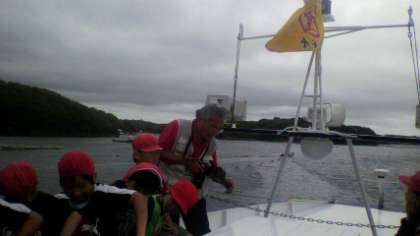 みさきの家のなかよし港に到着しました。子どもたちはみんな元気で,これからの活動を楽しみにしています。船からの景色もきっと子どもたちの胸に残っているでしょう。今日は,野外炊事でカレーを作ります。そして,ナイトハイクです。お天気にも恵まれ,少々風はきついですが雨は降っていません。お天気も味方につけている4年生です。