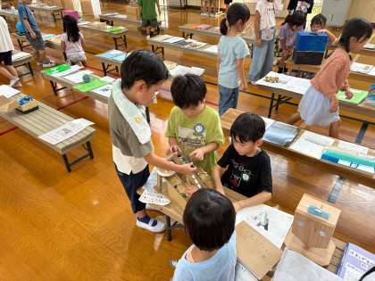 自由研究作品展で鑑賞を行いました。いろんな学年の人たちが、頑張って作った作品を楽しそうに見たり遊んだりする姿が見られました。今回見た作品のいいところを、来年の自由研究にぜひ活かしてほしいと思います。