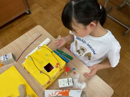 ずこうのがくしゅうで ちょきんばこを つくりました。