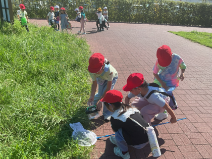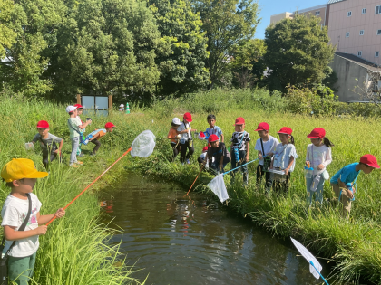 生活科の学習で、ロームビオトープに生き物探しに行きました。バッタやダンゴムシ、トンボなどたくさんの季節の生き物とふれあうことができました。つかまえた生き物が元気に過ごしてくれるように、学級でもお世話をがんばっています!