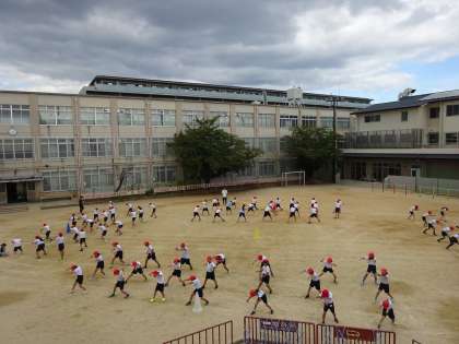 4年スポーツ大会に向けて 初めての団体演技の運動場練習