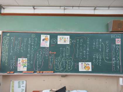 2年生では「ドッジボール」というお話を通して、友達を大切にするということはどういうことなのか考えました。