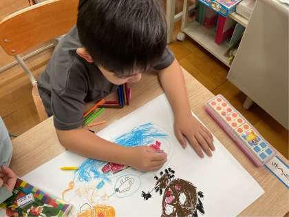 おはなしから おもいうかべたばめんや とうじょうじんぶつをかきました。