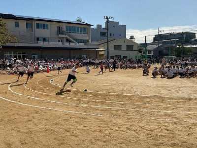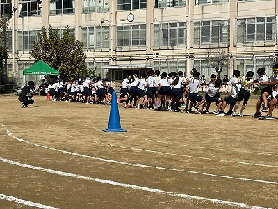 5年生では4色対抗リレーと、3色対抗つなひきを行いました。リレーではこれまでバトンパスを中心に練習をがんばってきました。本番では、どのチームもバトンを最後までしっかりとつなぐことができました。