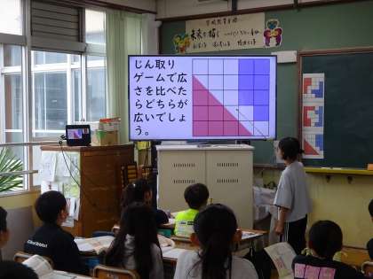 どのようなところに目を付けて考えたらよいのかを話し合い、面積の意味を確かめることができました。