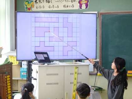 算数では面積の学習を始めました。広さを比べるために、形を重ねたり、切ったり、ますの数で比べたりして、どちらが広いかを確かめました。