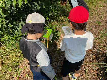 バッタやてんとうむしなど たくさんのいきものを みつけました。