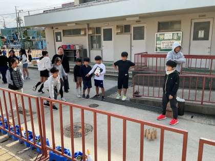 今日は、1日目が雨の場合に行う「モルック」をしてみました。初めてする子も多く、とても盛り上がっていました。ちなみに、先週時点では3日間は雨模様でしたが、子どもたちが作ってくれたてるてる坊主のおかげもあり、3日間の天気は今のところ雨は降らない予報ですので、このまま持ってほしいと思います…。明日は元気な姿で会いましょう☆