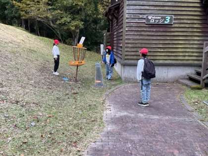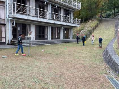 モルックの後は、自然の中でフライングディスクゴルフに挑戦です。