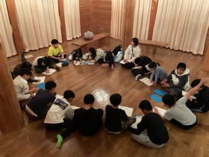 各学級のリーダーが集まり、一日の活動を振り返りました。