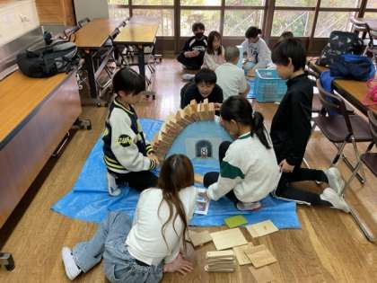 木を組み合わせてアーチを作ります。簡単にできると思いきや、なかなか完成するのは難しそうです…。