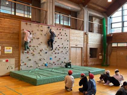 壁を登るのは簡単ではありませんが、「あと少し!」と声を掛け合いながら、みんな真剣な表情で取り組んでいます。