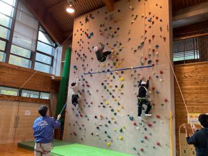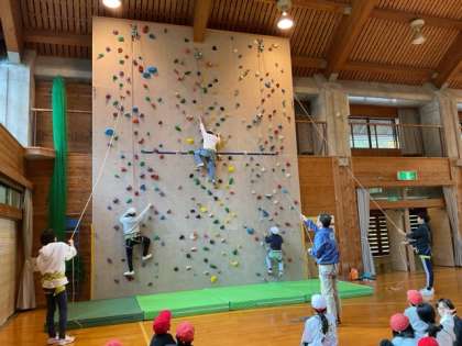 ロープクライミングでは、高さに挑戦するスリルと達成感を味わいました。子どもたちの笑顔があふれています!