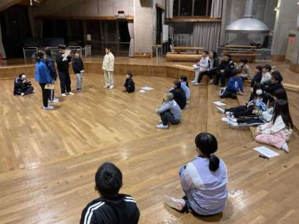 係の子どもたちが、この後に行われるキャンプファイヤーのリハーサルをしています。