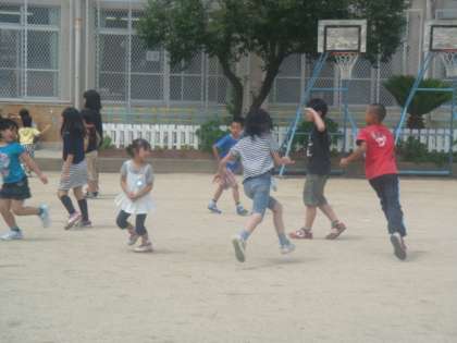 たてわりグループがより仲良くなるために,「たてわりあそび」が25日(月)26日(火)27日(水)の3日間行われています。6年生が中心となり,運動場で楽しく遊んでいます。『1年生でも楽しめる遊びを・・・』と思いやりの心で遊んでいる姿は,なんとも微笑ましいです。