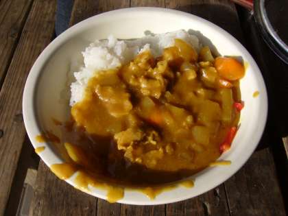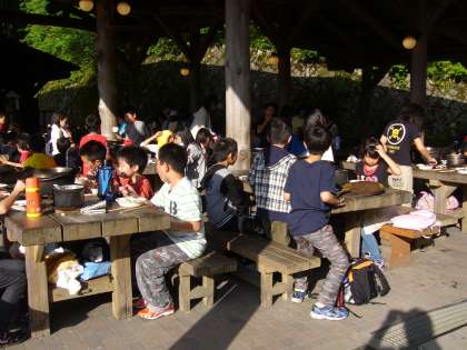 カレー作りにチャレンジです。ご飯係り,カレー係り,火の係りなどに分かれて,グループごとに作りました。とってもおいしいカレーライスができました。みんなおなかいっぱい食べました。食器やおなべ洗いなども,最後までがんばりました。