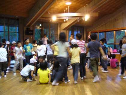 花背山の家でキャンプファイヤーなどを合同で活動する西大路小学校のお友達との顔合わせ会をしました。お互いの5年生の紹介をした後,楽しく「みんな集まれ!」ゲームをしました。お互いに名前を覚えたり,顔を覚えたりしました。