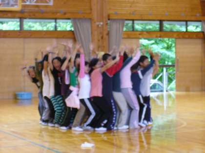 その後は,グループやクラス対抗のゲームをしました。クラス対抗の人間いすは,どちらのクラスも素早くしっかりとしたいすが完成しました。