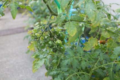 二年生はプチトマトを育てています。鈴なりになっている実も赤くなるのが楽しみですね。