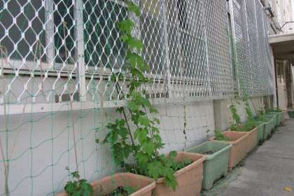 四年生はフトレイシを育てています。もう子どもたちの背たけを抜いているものもあります。