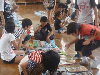 子どもたちはたくさんの本を大切にめくりながら「この本はおもしろそうやな。」「あの本は絵がきれいでいいな。」「向こうの本は写真がきれいやったな。」と本を選ぶのに悩んでいました。