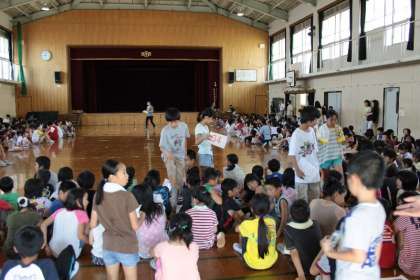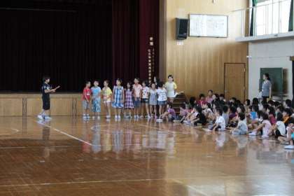 保健委員会は「水分をしっかりとって熱中症に気をつけてください。」と熱中症予防を呼びかけ、体育委員会は「遊んだものをだしっぱなしにしないで後片付けをしましょう。」と話がありました。