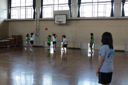 部活動のバスケット部では8月6日の試合に向けて練習を励んでいるところです。