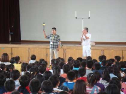 主に3つのことをみんなでお話を聴きました。集合したらマイクを使わなくても話が聴けるように静かにすること、不審者かどうかは見かけでは分からないこと、危険を感じたら大声を出すことです。