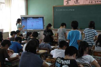 5年生では社会「わたしたちの生活と食糧生産」で棒グラフを読み解きました。5年生ではテレビに映し出された棒グラフから食糧生産の工夫について考えていました。