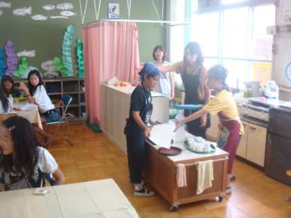 敬老会に引き続き,「ふれ愛ひろば」が行われました。焼きそばやうどん,ジュース,焼き鳥,フライドポテト,おにぎり,焼き芋・・・たくさんのお店がでて,大盛況でした。さくら学級の子どもたちが「カフェさくら」を出店し,飲み物と手作りクッキーを振舞いました。行列できるほどお客さんがたくさん来てくださり,大忙しでした。みなさん「おいしかった」と笑顔で帰って行かれました。さくら学級の子どもたちも一生懸命接客をしていました。