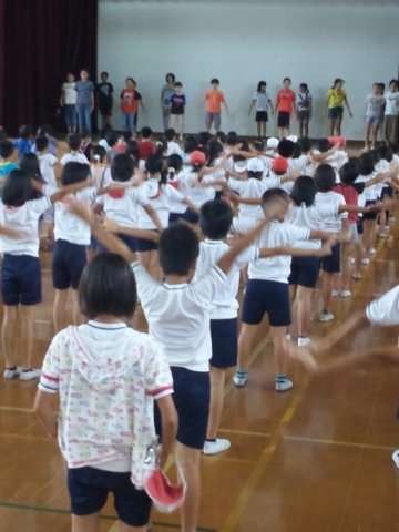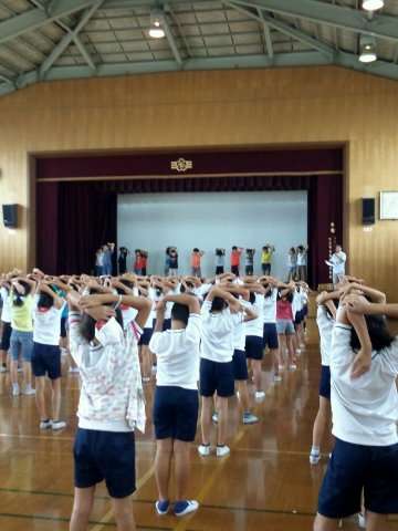 全校体操のやり方を教えてもらいました。