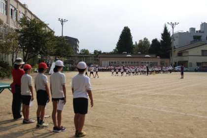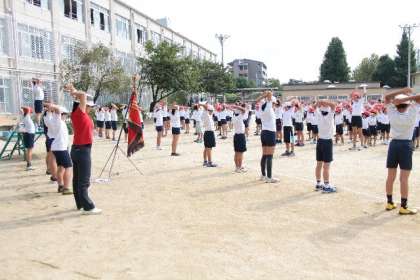 全校練習では運動会の開会式や入場行進、全校体操などをしました。