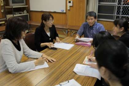 読書活動推進委員会、課外活動推進委員会、教育支援委員会、学校美化委員会、学校評価委員会に分かれて話し合いました。どの委員会でも活発に話し合いが進み,たくさんの具体的な取組が出されました。熱心な中にも穏やかでとてもよい雰囲気でした。最後の報告会では,それぞれの委員会からの話し合いの報告があり,活発な様子がよくわかりました。