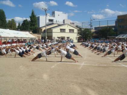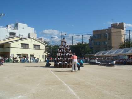 5・6年生の組体操「レジェンド オブ 73」は感動いっぱいの組体操でした。一つ一つの演技に会場から拍手が送られました。今まで一生懸命練習してきた成果がしっかり発揮されました。きりっと真剣な眼差しは本当に格好良かったです。さすがは高学年。見ている人たちに多くの感動を与えました。演技が終わった後の会場からの惜しみない拍手と,成功を喜びあう姿に,またまた感動しました。最後にふさわしいとても素晴らしい組体操でした。