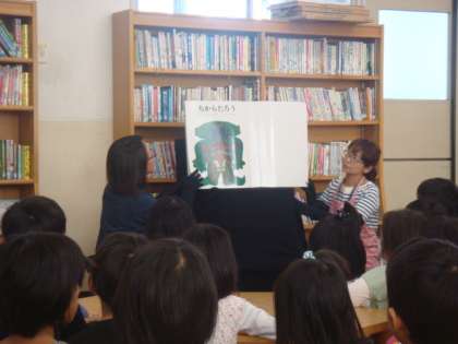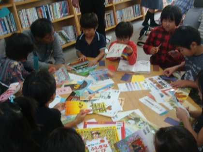 13日(土)に学校運営協議会の読書活動推進委員会主催による土曜学習「読書の広場」が行われました。10名を超える図書ボランティアの方と40名を超える参加児童で,大盛況でした。内容は大型絵本「ちからたろう」の読み聞かせと,オリジナル栞作りでした。読み聞かせでは,お話が始まると子どもたちはすぐにお話の世界に引き込まれ,真剣な眼差しで聞いていました。そのあとの栞作りでは,工夫しながら世界に一つだけのオリジナル栞を進んで作っていました。