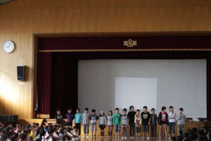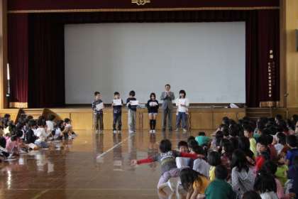 後期の児童会本部役員の発表が児童朝会にてありました。